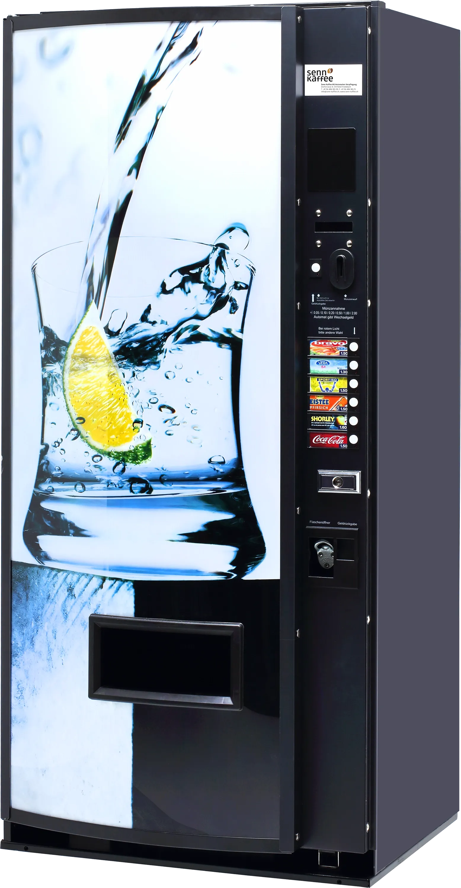 Geniessen Sie jederzeit ein kühles Getränk. Das Sortiment wählt der Kunde aus Fruchtsäften, Süssgetränken und Mineralwasser.